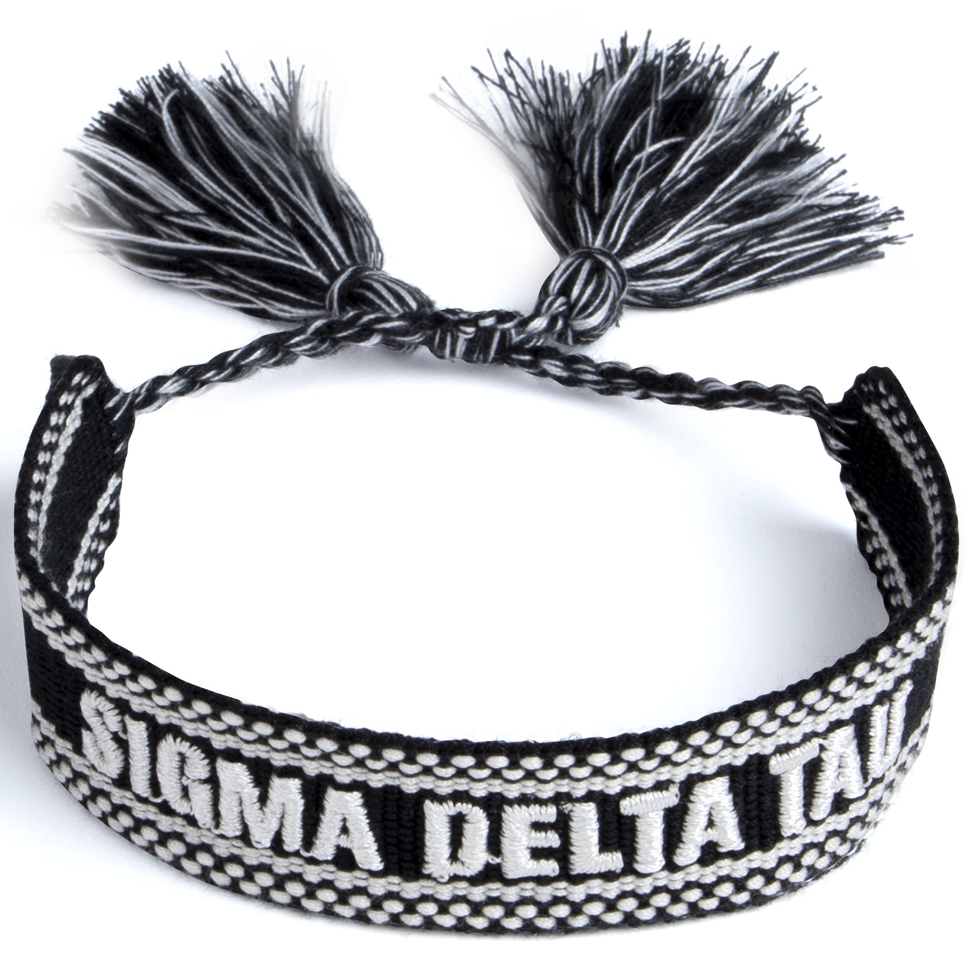 Sigma Delta Tau Woven Bracelet, Black and White Design