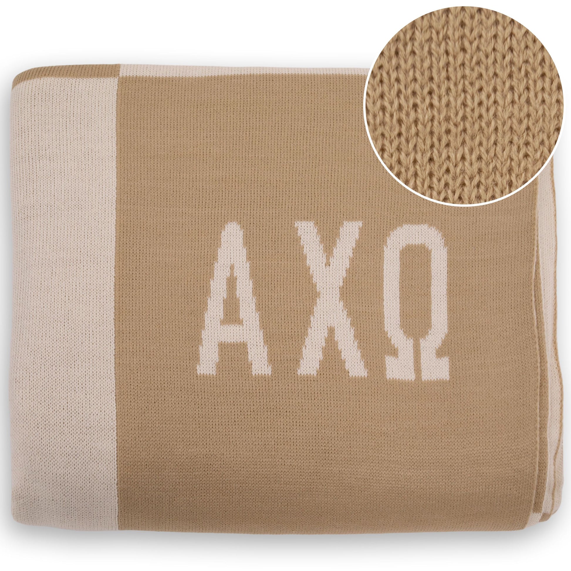 Snuggle up in style and showcase your Alpha Chi Omega sisterhood with our irresistibly soft and lightweight biscotti and pearl ivory throw blanket.