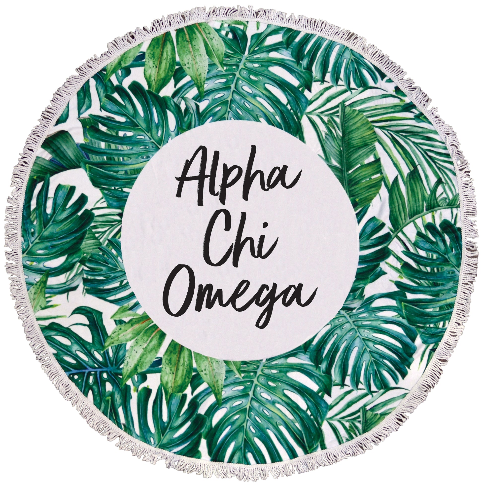 Show your Alpha Chi Omega pride at the beach, pool, or just around the dorm with these full color, plush microfiber sorority towels/blankets. A full 60" in diameter! 🌴