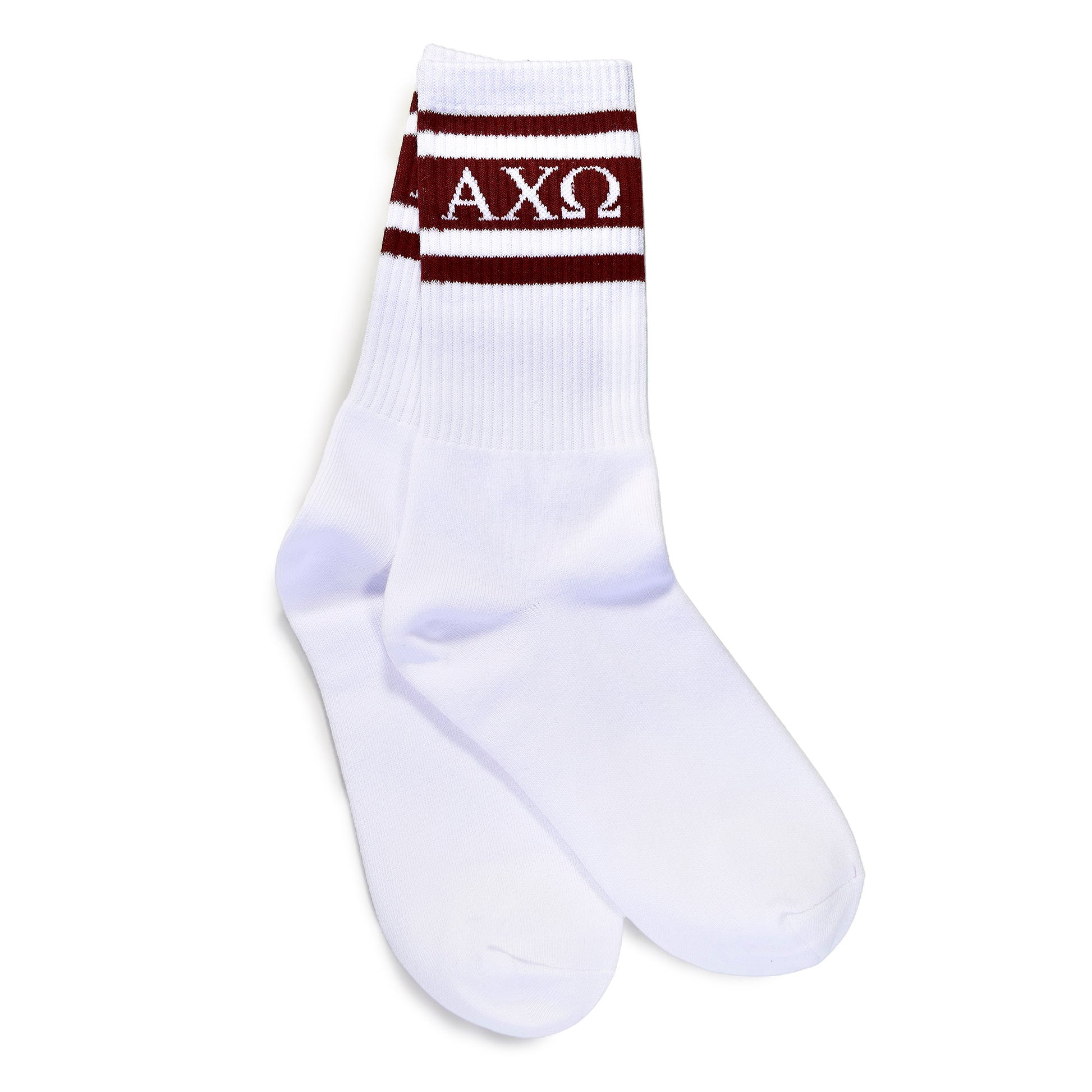 - SHOW OFF YOUR SORORITY PRIDE- Show off your Alpha Chi Omega Greek letters and sorority colors in these vintage-style athletic socks.