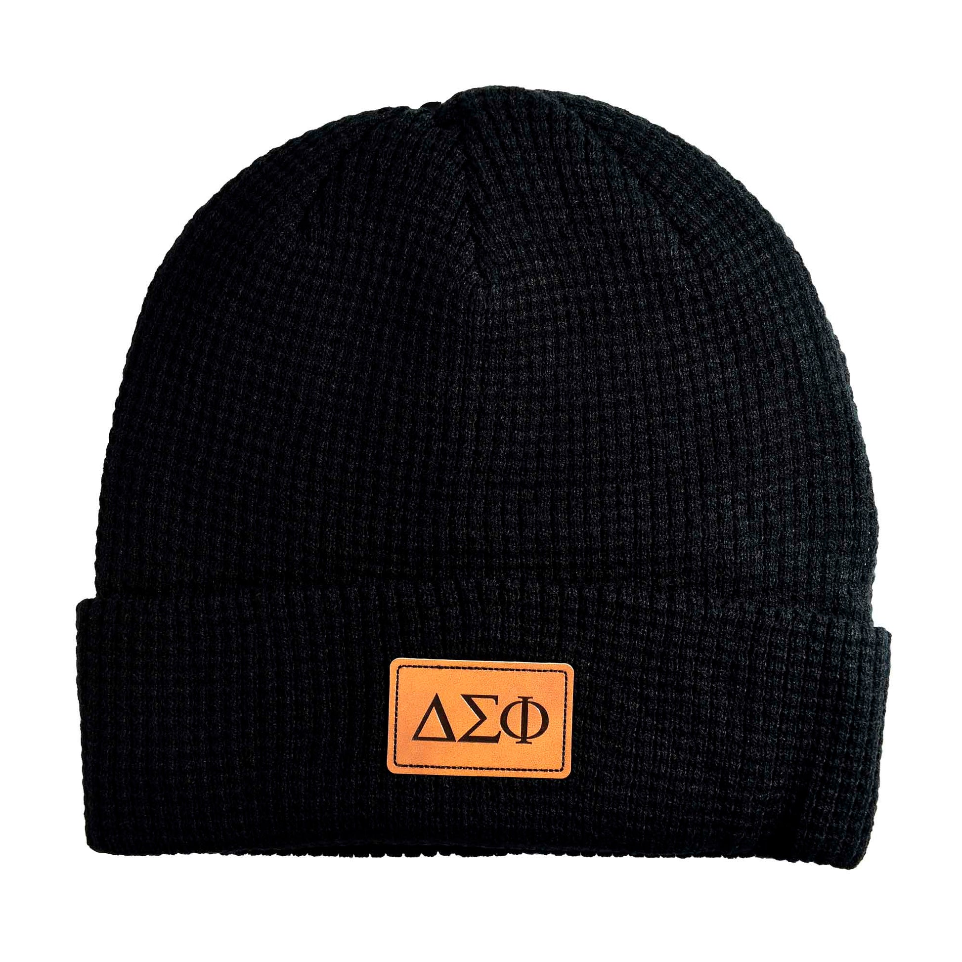 Delta Sigma Phi Fraternity Beanie Hat - Black Winter Hat w/ Greek Letters Patch