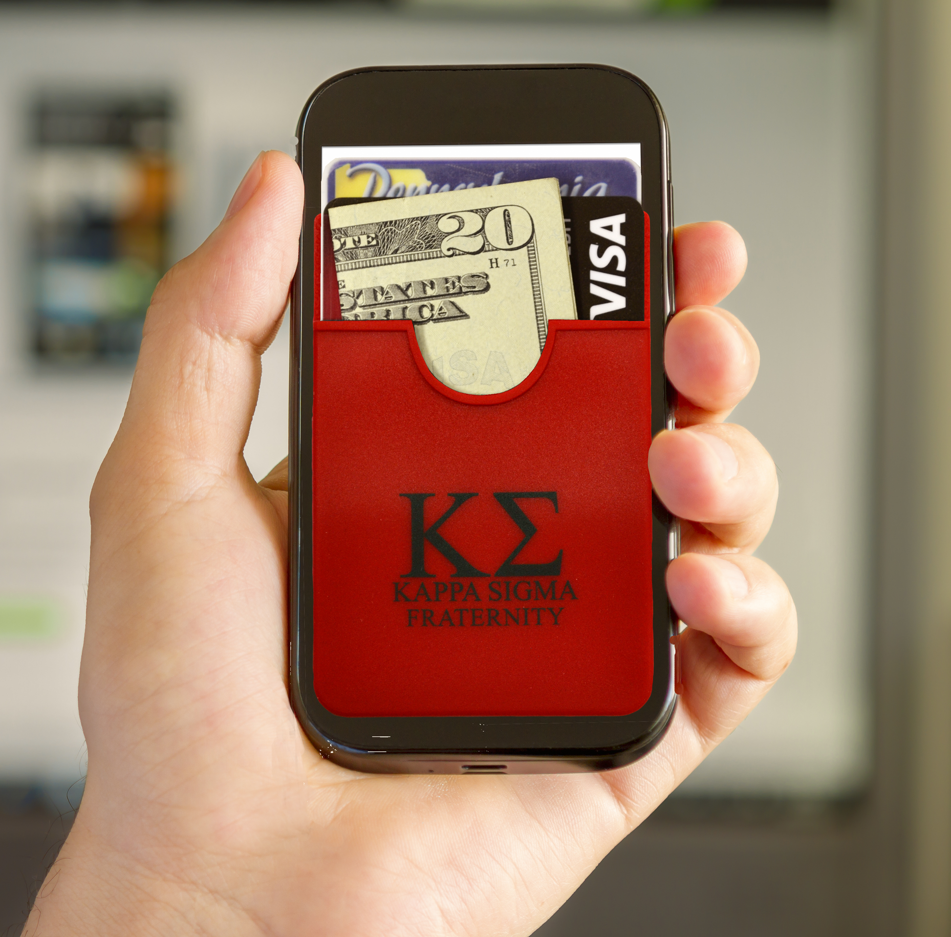 Show your fraternity pride with the Koala Pouch, adhesive cell phone wallet, the perfect solution for the multitasker on the go! Keep all of your valuables safe and secure in one place while reducing the amount of items you routinely carry. The Koala Pouch will securely hold up to 3 cards at a time and helps you with gripping your device as well.