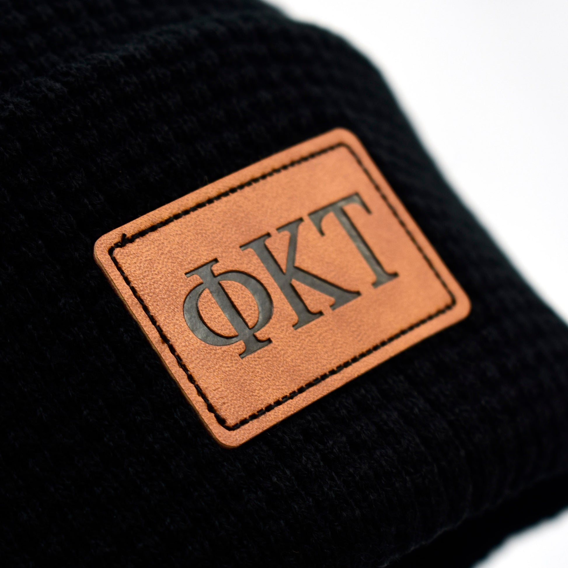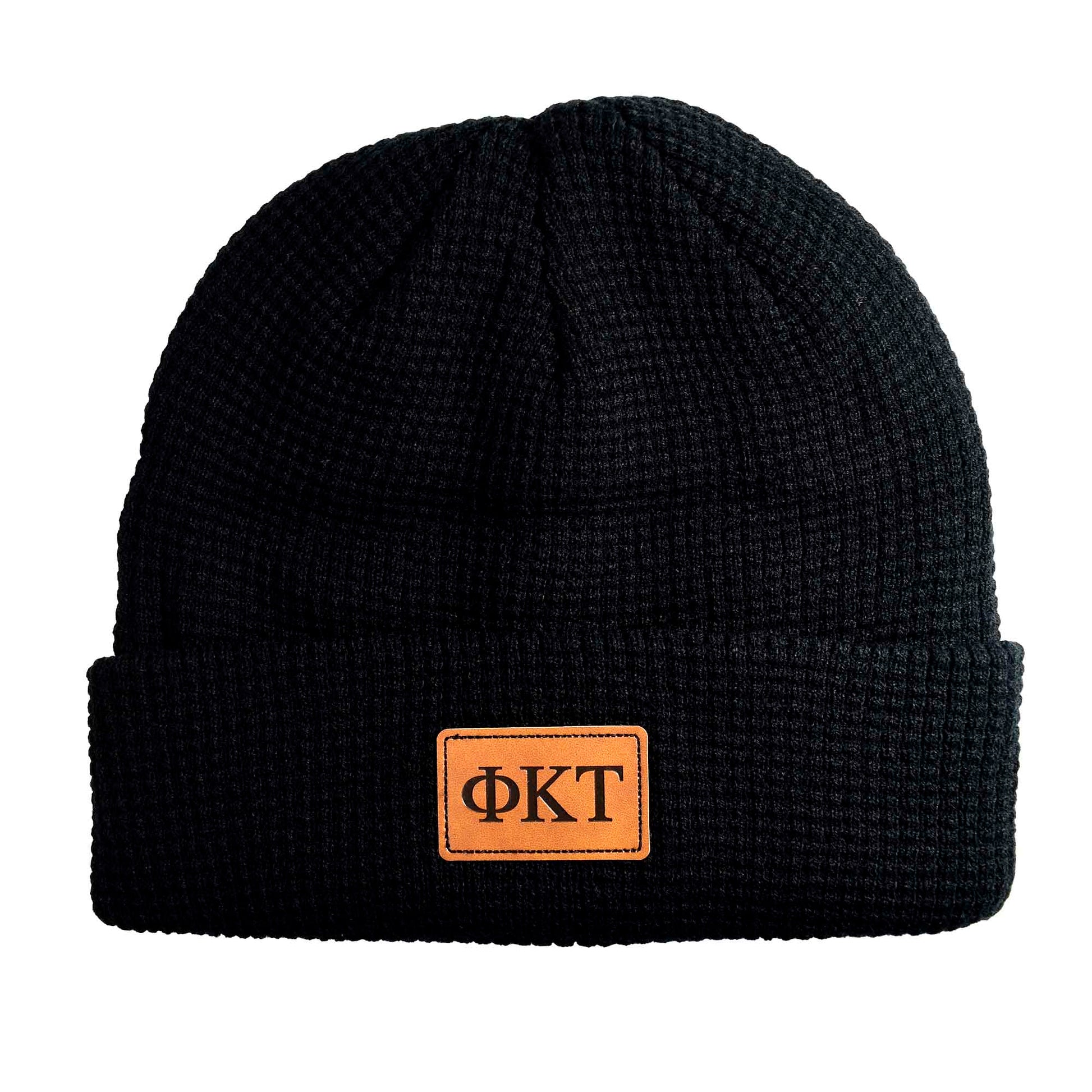 Phi Kappa Tau Fraternity Beanie Hat - Black Winter Hat w/ Greek Letters Patch