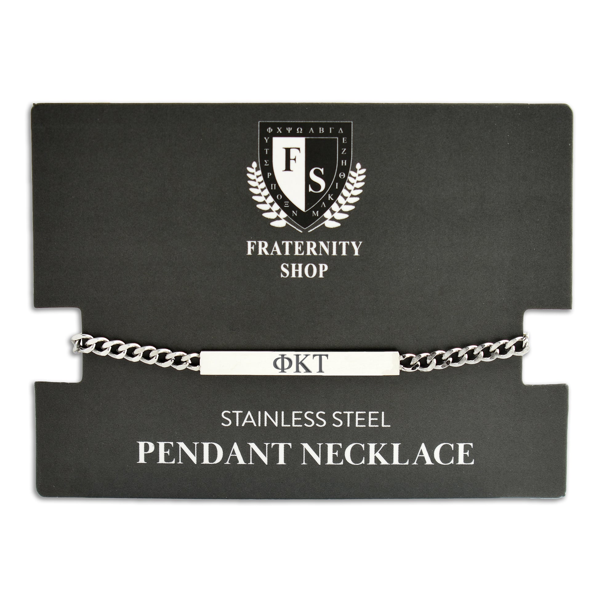 STAINLESS STEEL QUALITY CONSTRUCTION – The stainless steel chain necklace is 18" (with a 2" extension) and securely attaches to the 1 ½” x 3/16” steel bar pendant featuring the engraved fraternity letters. Results in an eye-catching look!
