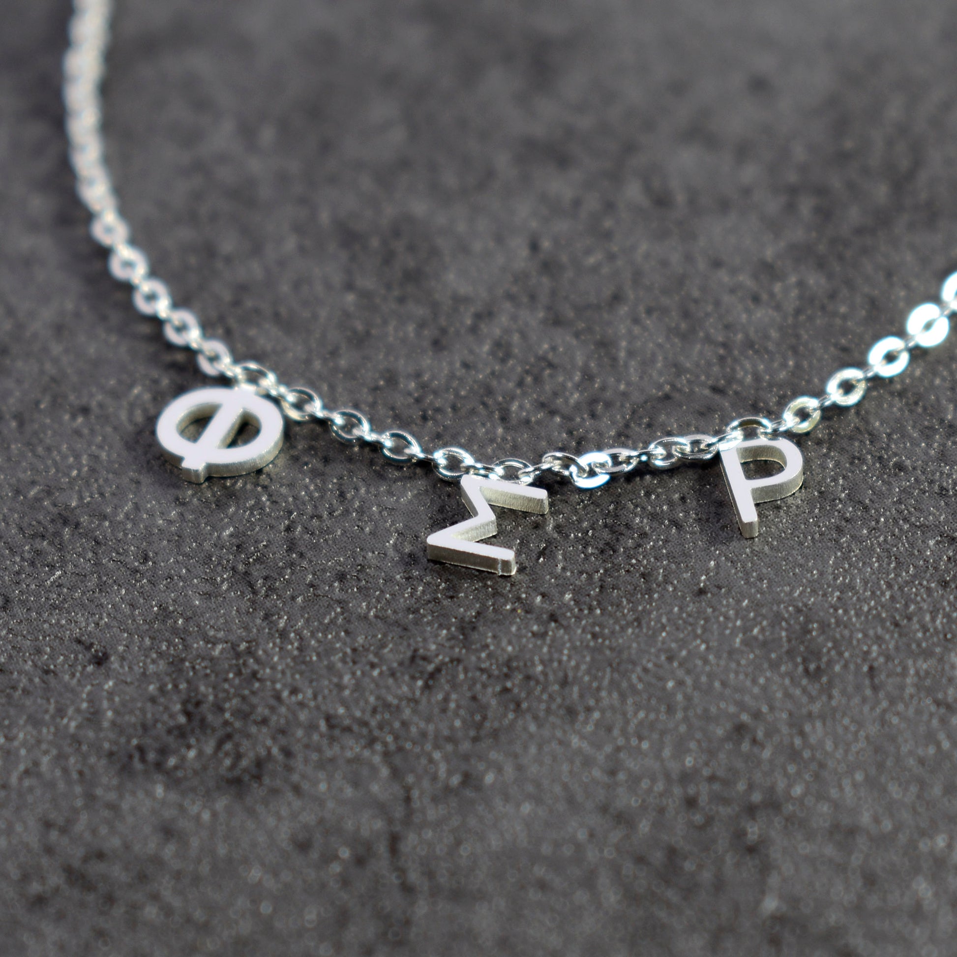 The perfect gift of Sisterhood! Our Greek Letters necklace features your sorority letters dipped in silver! Perfect for a bid day gift, big little gift or a treat for yourself!