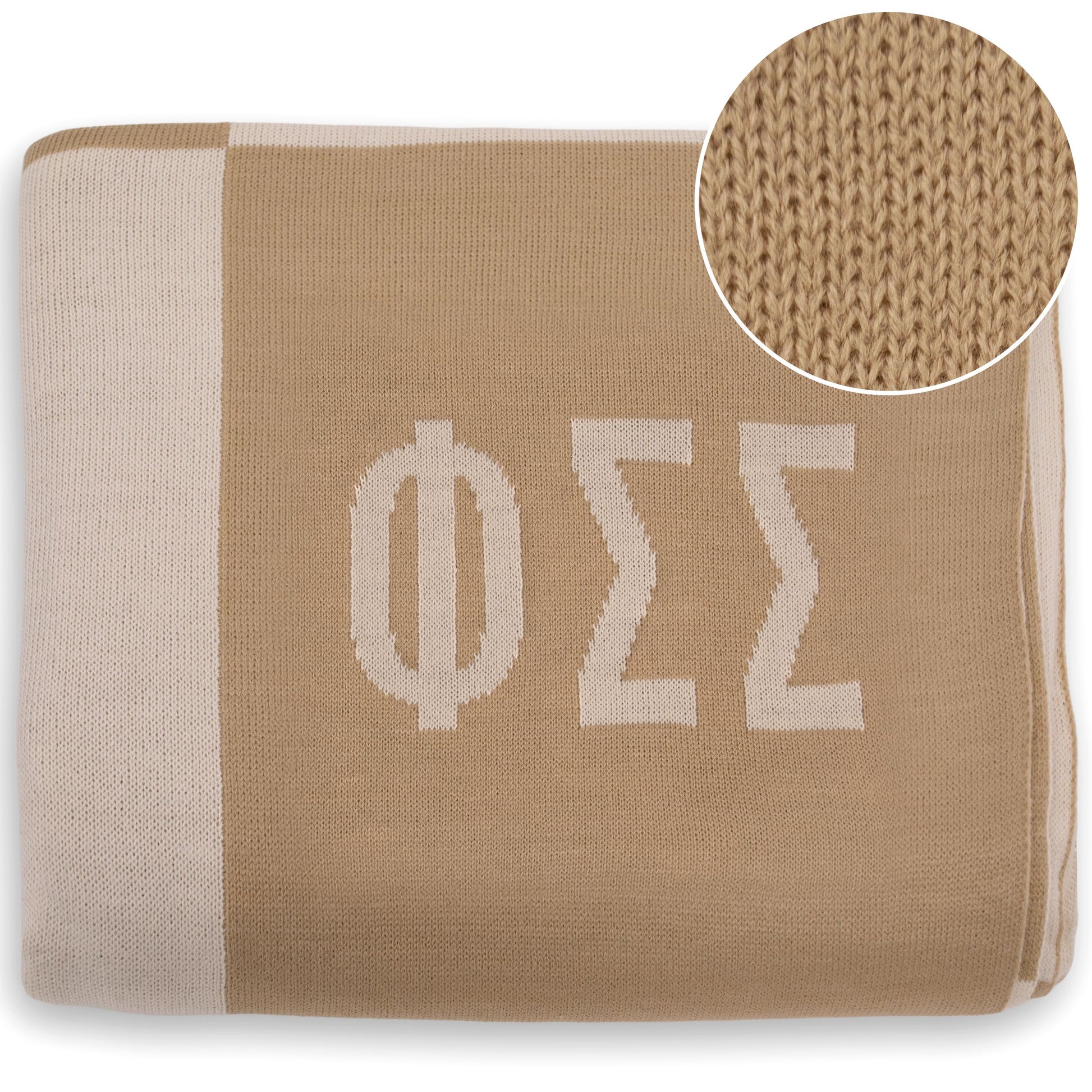 Snuggle up in style and showcase your Phi Sigma Sigma sisterhood with our irresistibly soft and lightweight biscotti and pearl ivory throw blanket.