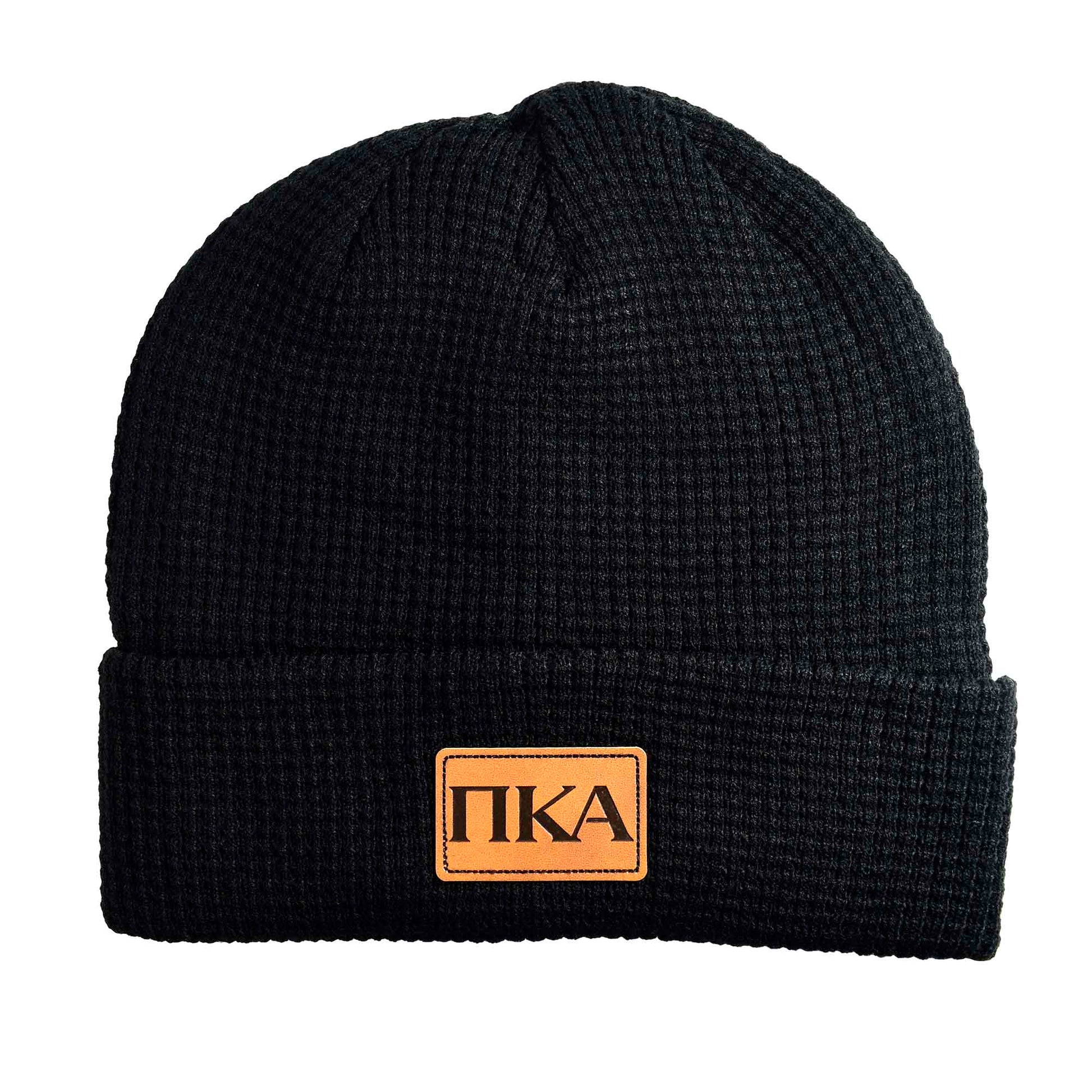 Pi Kappa Alpha Fraternity Beanie Hat - Black Winter Hat w/ Greek Letters Patch