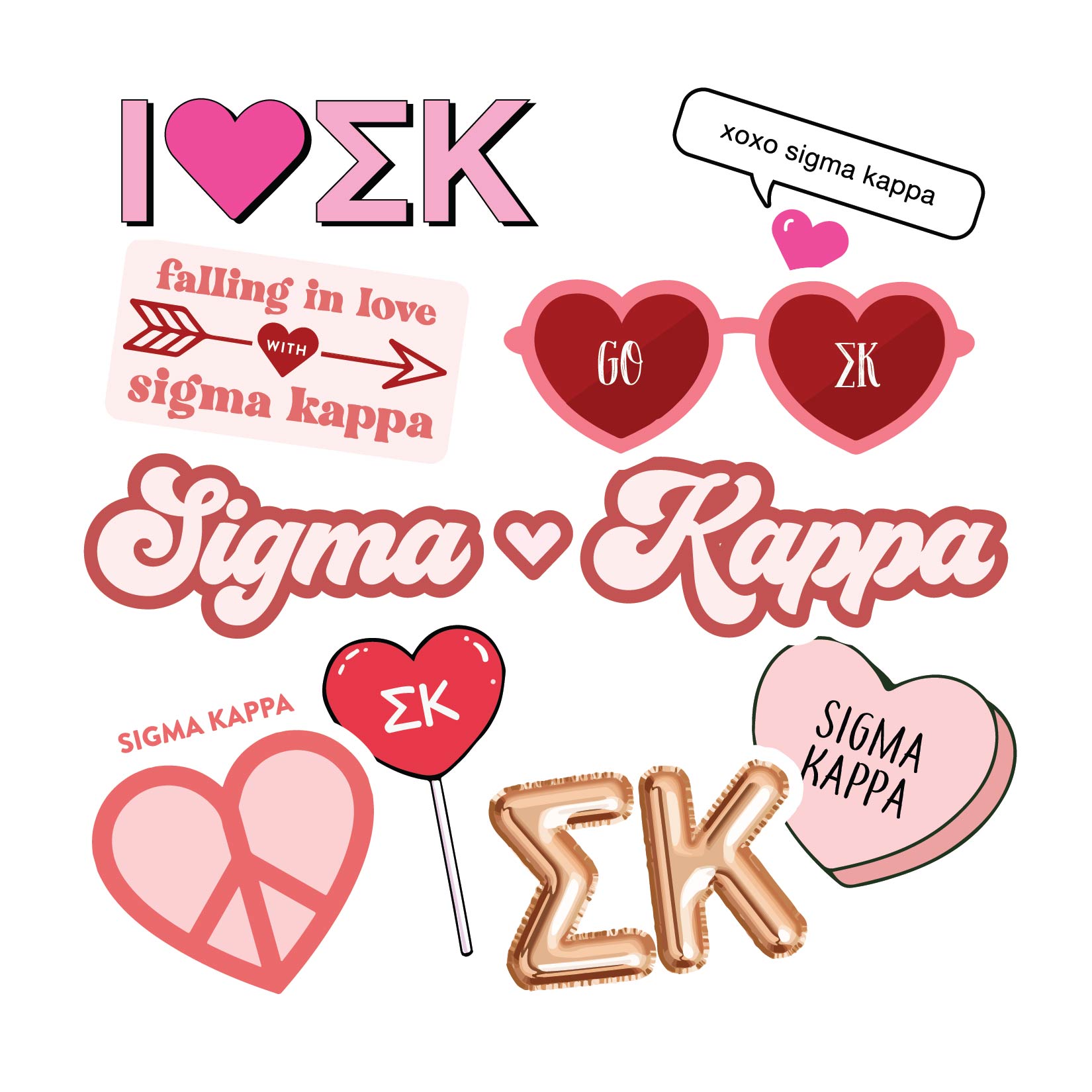 Celebrate your LOVE for your sisterhood with these high quality “Love Theme” stickers! Each sheet contains 9 stickers unique to your sorority. Printed on sturdy vinyl, they are easily removed or repositioned leaving NO STICKY RESIDUE! These stickers are the perfect way to show your sorority spirit - display them on a notebook, computer, tumbler or almost any clean dry surface; the possibilities are endless! Our officially licensed stickers make great gifts for sisters and are great to stock up on for special events or rush week.