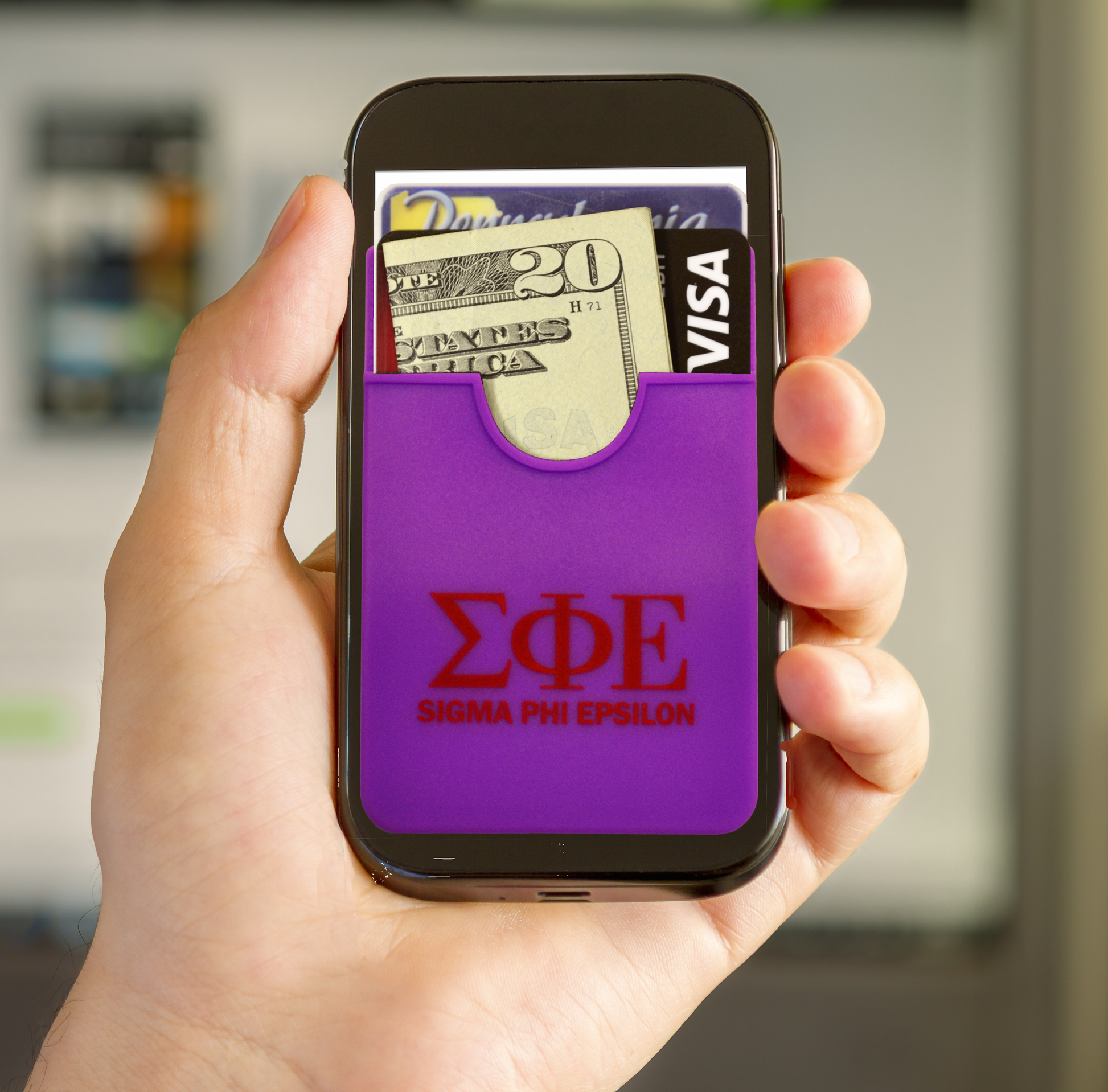 Show your fraternity pride with the Koala Pouch, adhesive cell phone wallet, the perfect solution for the multitasker on the go! Keep all of your valuables safe and secure in one place while reducing the amount of items you routinely carry. The Koala Pouch will securely hold up to 3 cards at a time and helps you with gripping your device as well.
