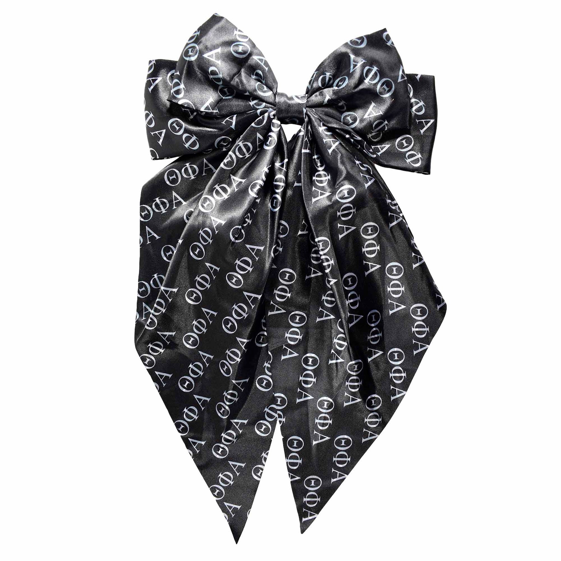 Show off your Theta Phi Alpha Greek letters with this 15" x 8" oversized hair bow, crafted from high-quality polyester and a super fashionable way to support your sorority.