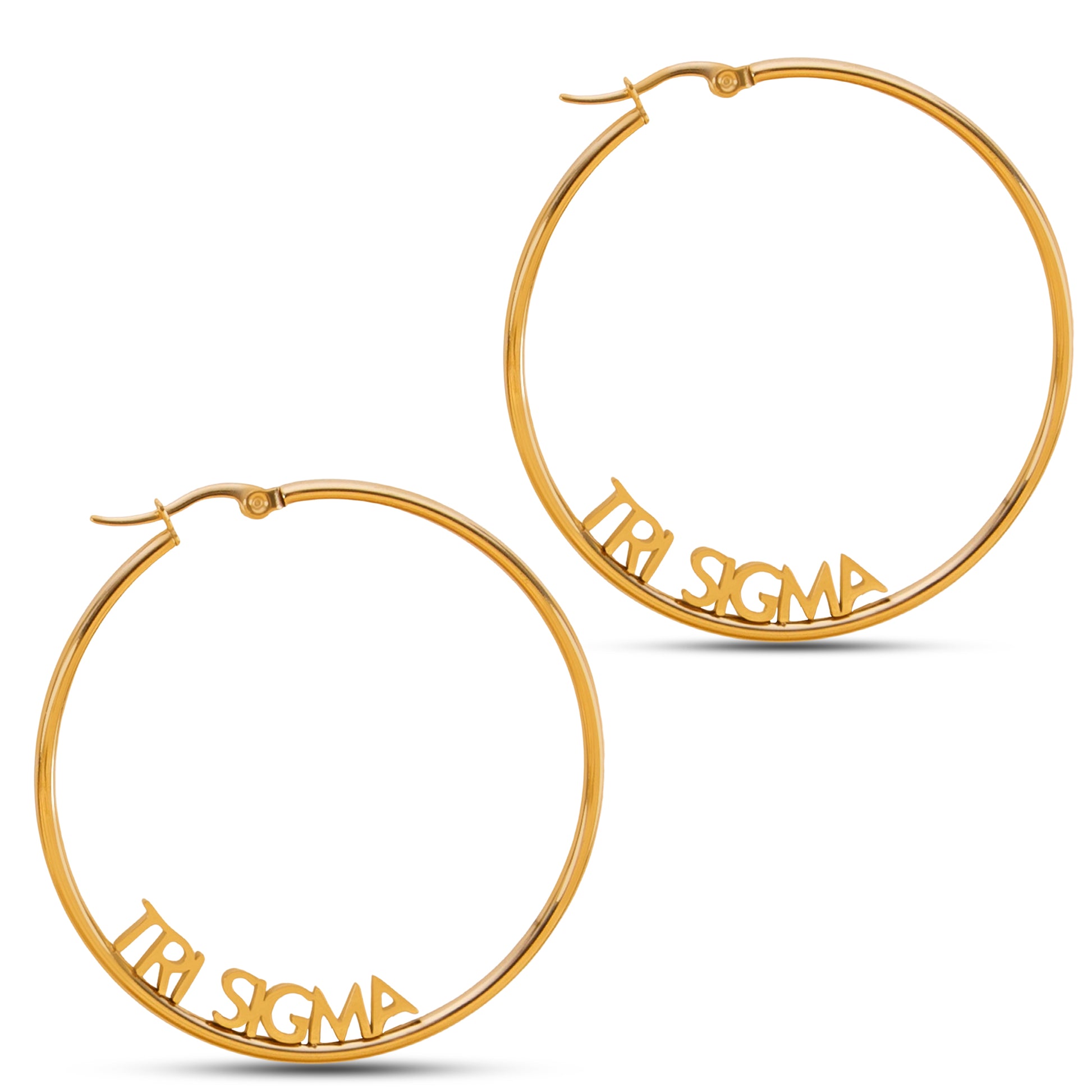 Sorority shop is dedicated to providing high-quality Greek sorority gifts. Show your support to the sisterhood by wearing our fabulous earrings! We all enjoy wearing jewelry to class, parties, work, and other places. So, what's better than having your sorority's name emblazoned on it? Buy this set of hoops for yourself or gift it to your sorority sisters on bid day, big little, or birthdays. Showcase your association with the fantastic 18 karat gold-plated earrings. The perfect souvenir for you and other members is right here. ADD TO CART NOW!