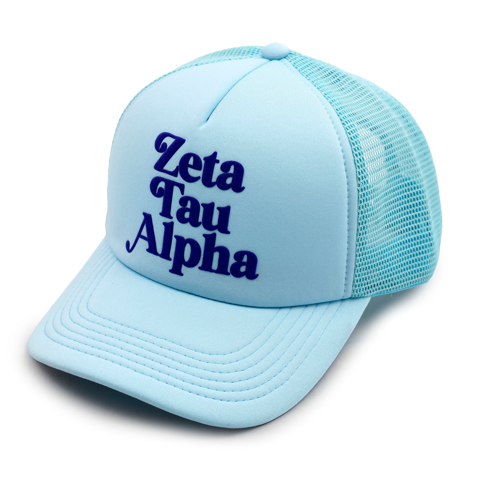 Sorority Shop proudly presents their Zeta Tau Alpha Trucker-Style Baseball Hat, providing a casual and cool look for all seasons.