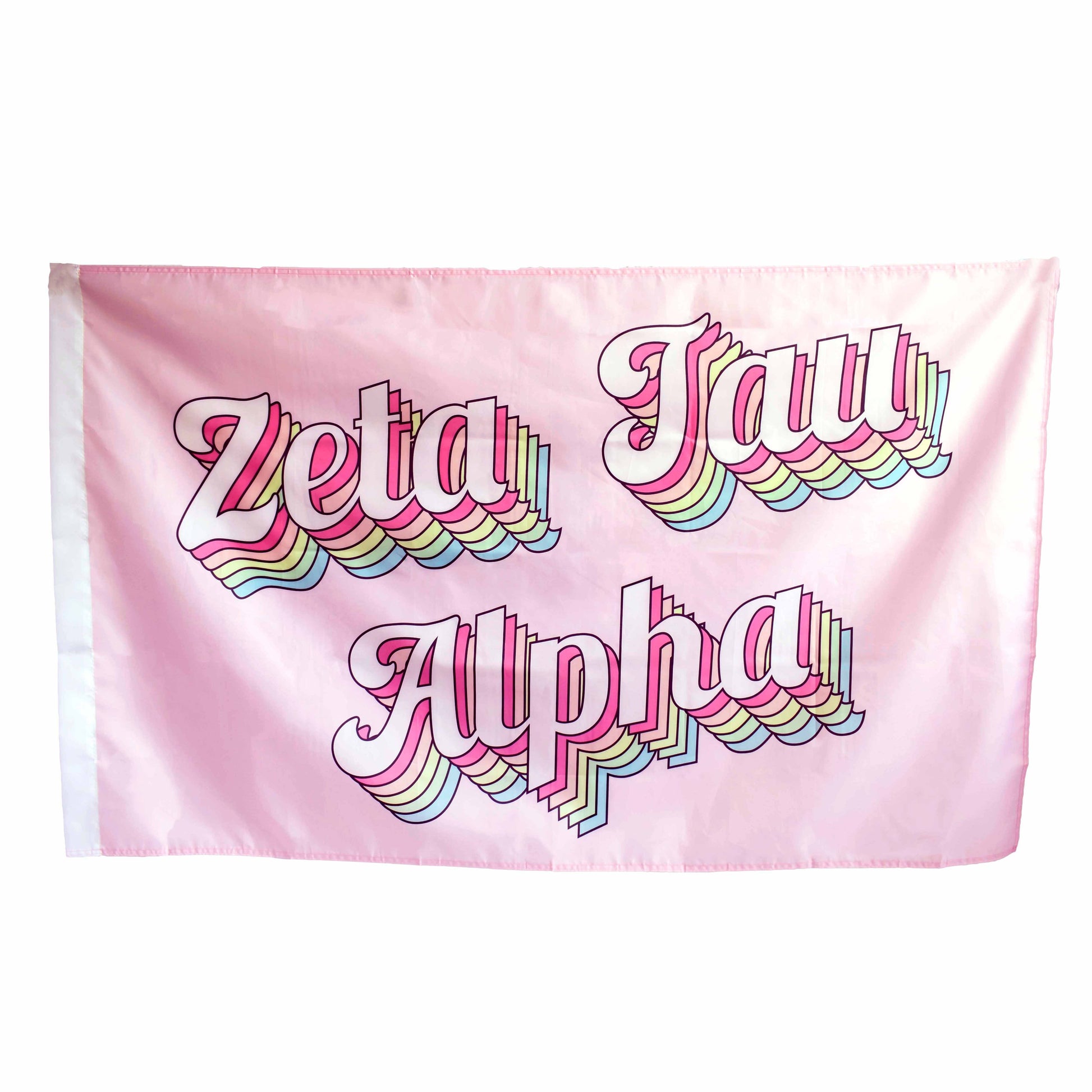 Show your Zeta Tau Alpha pride anywhere with these brightly colored sorority flags. A generous 60" x 36", constructed of sturdy nylon, they are perfect for indoor and outdoor use. Each sorority has three designs from which to choose: Succulent, Tropical Palm or Retro Design! They are easily wall-mounted but we have also included a convenient pole-sleeve for traditional flag pole use.